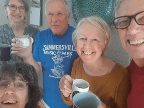We are grateful to all of our hosts, presenters and friends who kindly shared their homes, concert venues and new stories with us. Our tour was called The Pour Tour because of the new record, The Painter’s Bucket, and we poured songs out of the bucket, as well as many cups of builder’s tea and a few bitter pints. Builders Tea is a strong, thick, sweet made tea with milk and often multiple teaspoons of sugar. Boiling water, poured over a teabag (black Assam) placed directly in a mug. Then stirred with a spoon, a drum stick or any building site implement that comes to hand until it’s strongly steeped. Yes indeed. No shortage of caffeine.
