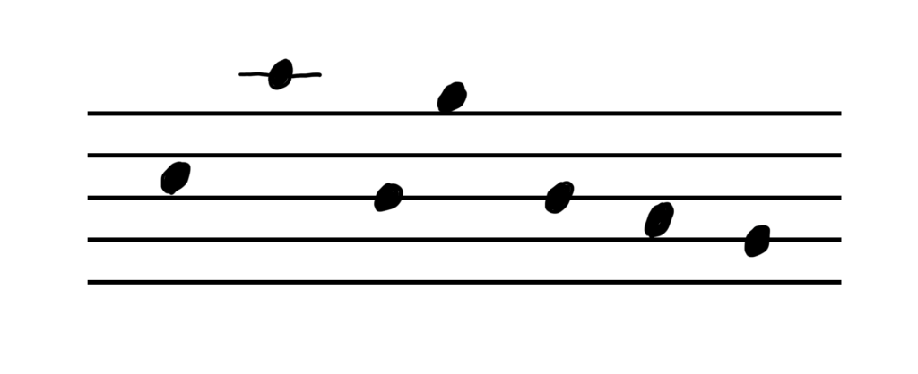 That close musical spelling of CHINWAG was my first attempt. Let’s try to do a second attempt where the notes are more open. Close and open are the terms we’ll use to describe the melodic line.